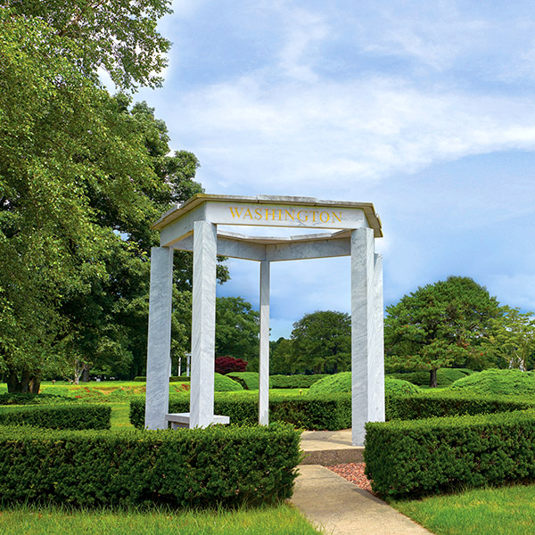 - Inspired memorial gardens meticulously landscaped with flowering trees, art and architecture